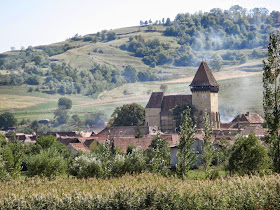 Mi-am luat picioarele la plimbare, pe lângă bicicletă, hoinărind becesnic și cu sufletul la gură. Porți mari, din lemn vechi, ziduri groase, crăpate, inscripții în limba germană, hulubării, ornamente, ani de construcție, nume de persoane ... fețe uimite ale localnicilor, soare, case ce nu pot fi denumite case, ci mai degrabă adăposturi pe cale de implozie, dar ......... aproape pe toate trona câte o pălărie albă, de satelit Dolce sau cum io zice.